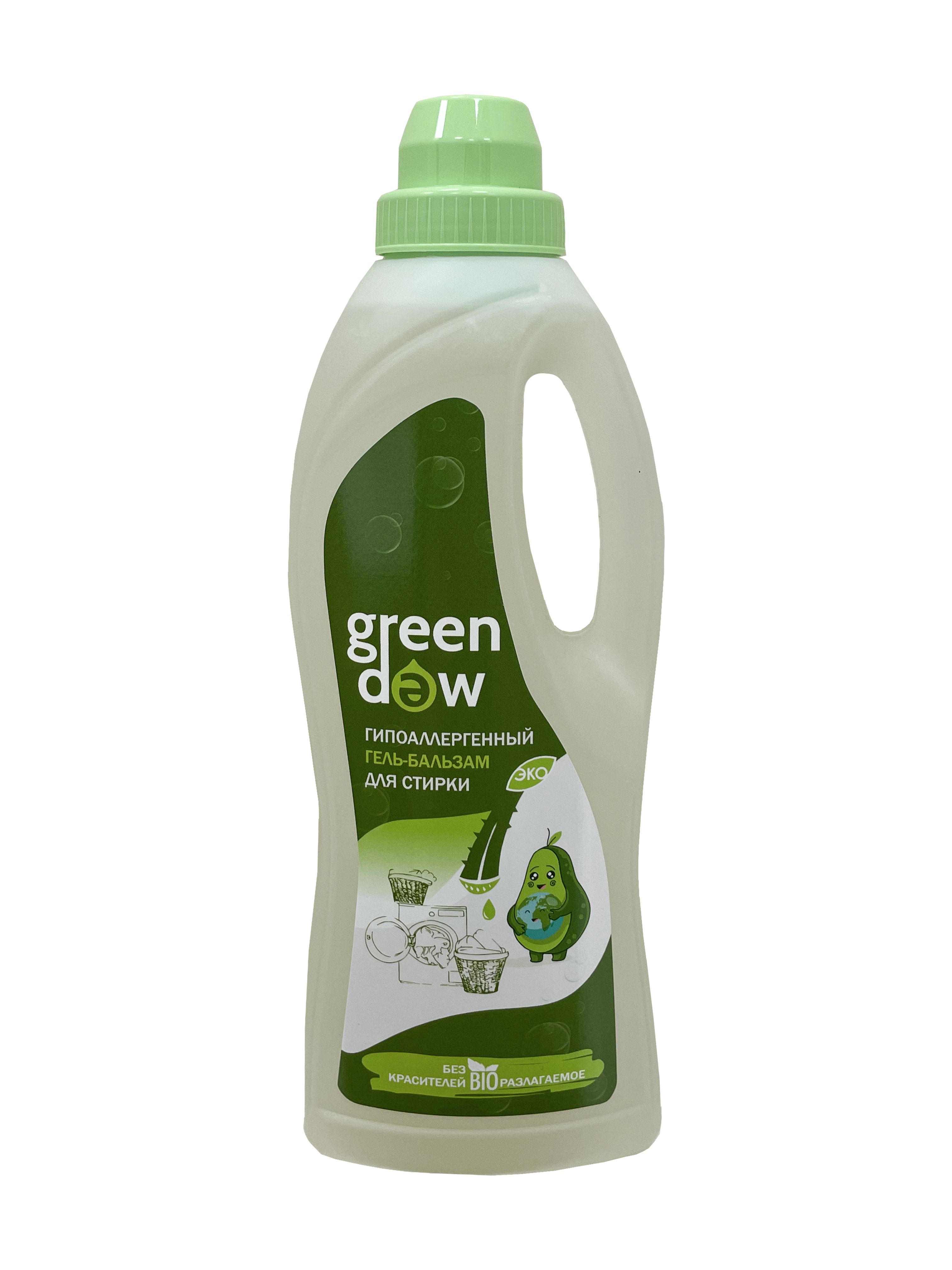 «Грин Дью» Эко гель для стирки 1 л — биоразлагаемый гипоаллергенный гель-бальзам для автоматической и ручной стирки белого и цветного белья, обеспечивающий эффективное удаление загрязнений даже в холодной воде.