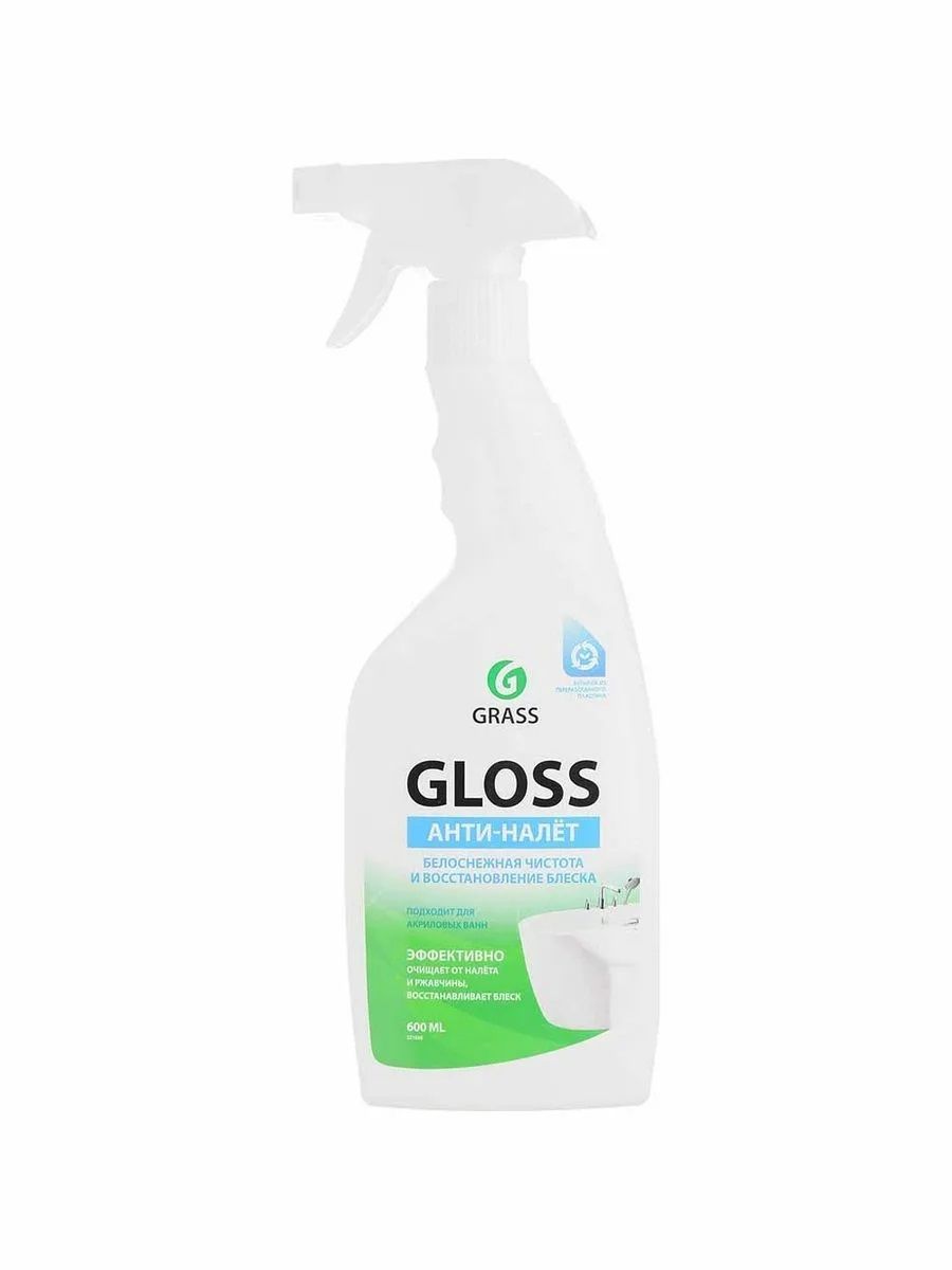 Средство для ванн и туалета «Grass Gloss Антиналёт» спрей 600 мл — универсальный кислотный очиститель для акриловых ванн, душевых кабин, унитазов, раковин, кафеля, сантехники и фаянса.