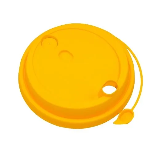 Желтая крышка с заглушкой является функциональным и удобным аксессуаром для потребления напитков.