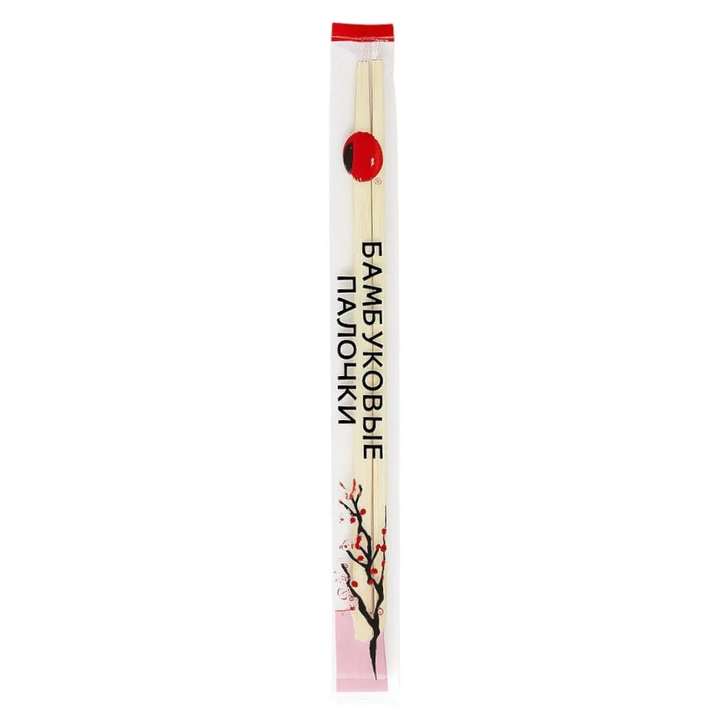 Палочки для еды в индивидуальной прозрачной упаковке, в комплекте с зубочисткой. Используются для употребления в пищу роллов, суши, лапши и других блюд азиатской кухни. Длина - 20 см.