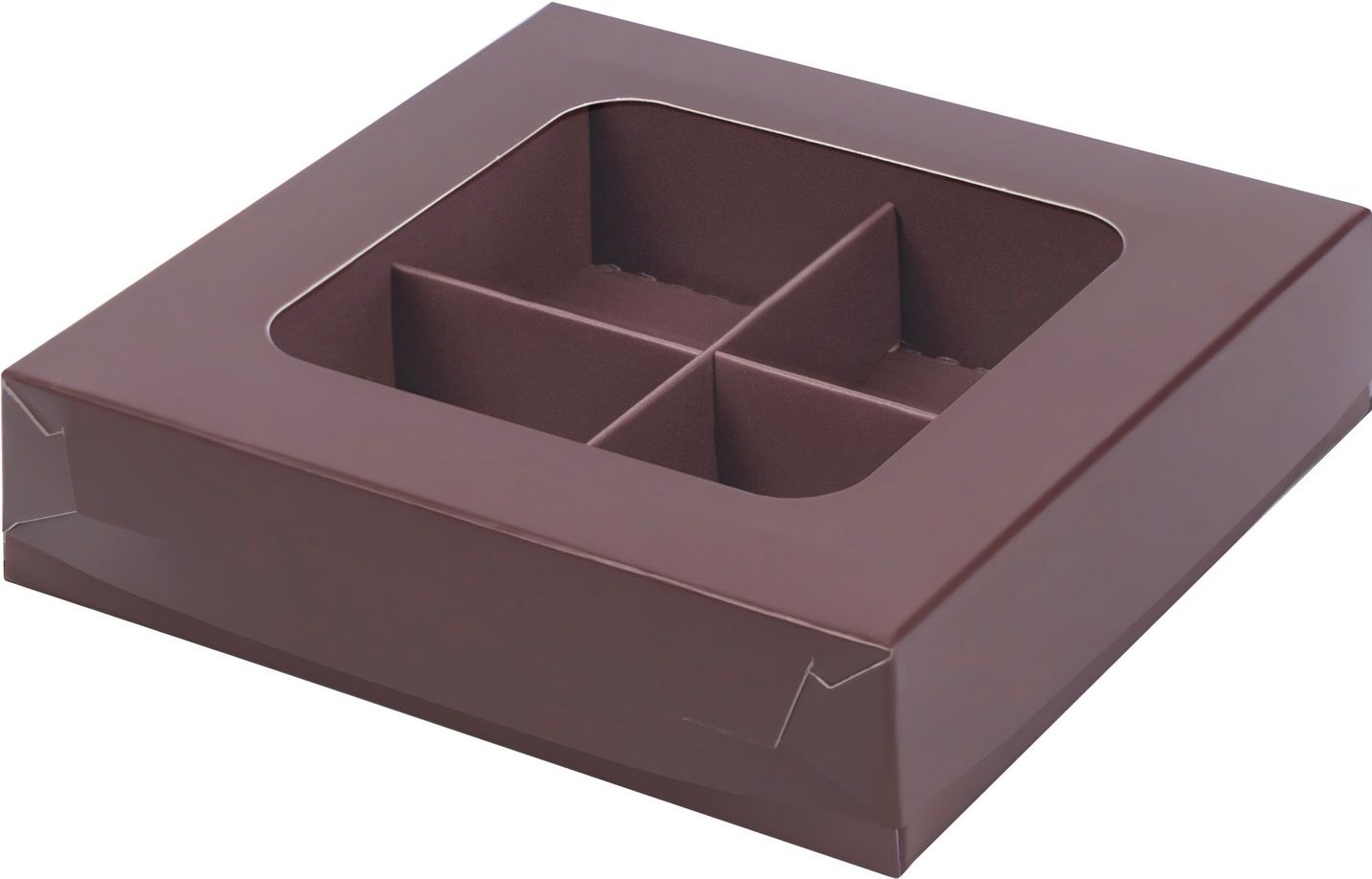 коробка бум. 120х120х30 для 4 конфет шоколад матовая с окном