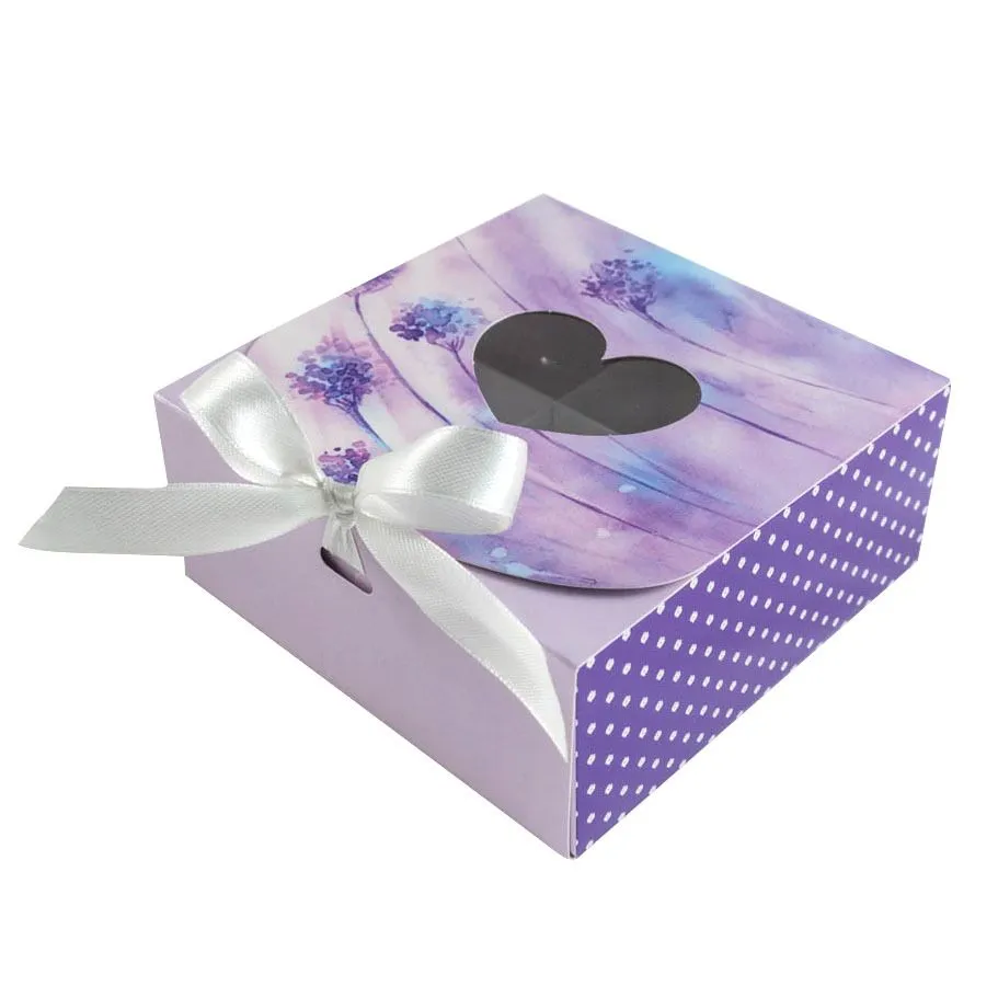 Коробка бумажная для конфет Лавандовая фантазия с окном и лентой. Используют для упаковки и транспортировки конфет при доставке.