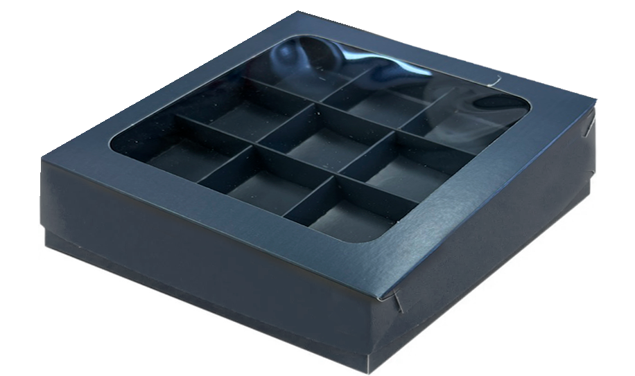коробка бум. 155х155х30 для 9 конфет графит с окном