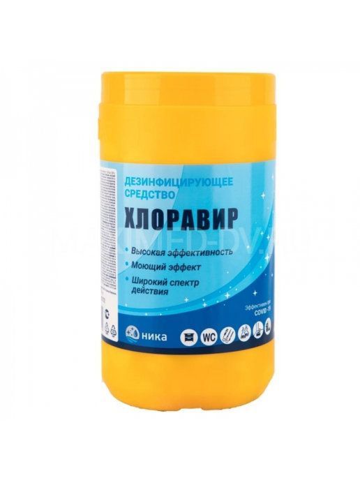 ХЛОРАВИР- содержит в качестве действующего вещества натриевую соль дихлоризоциануровой кислоты, функциональные и моющие добавки.