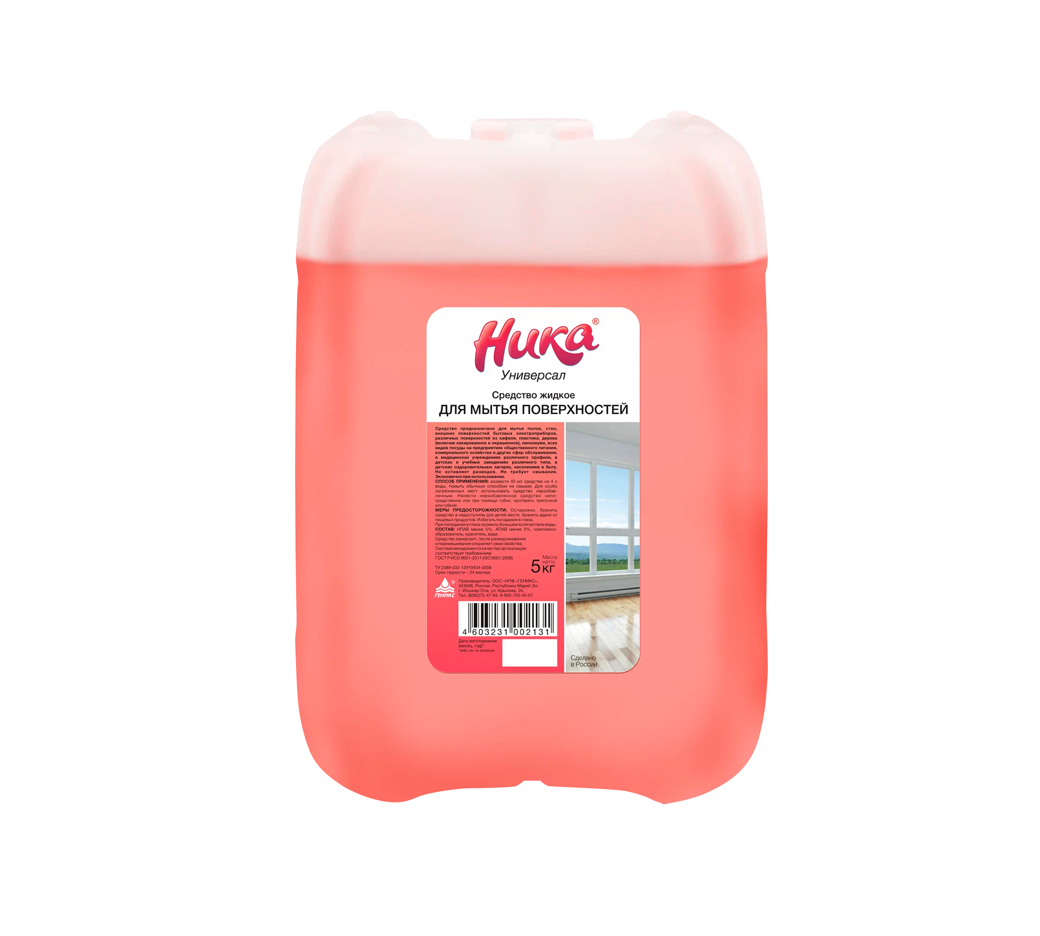 Слабощелочное, с НПАВ <5%, АПАВ <5%, сверхэкономичное (10-40 мл на 4 л воды), сохраняет свойства после заморозки — выгодный объём 5 кг для масштабной уборки.