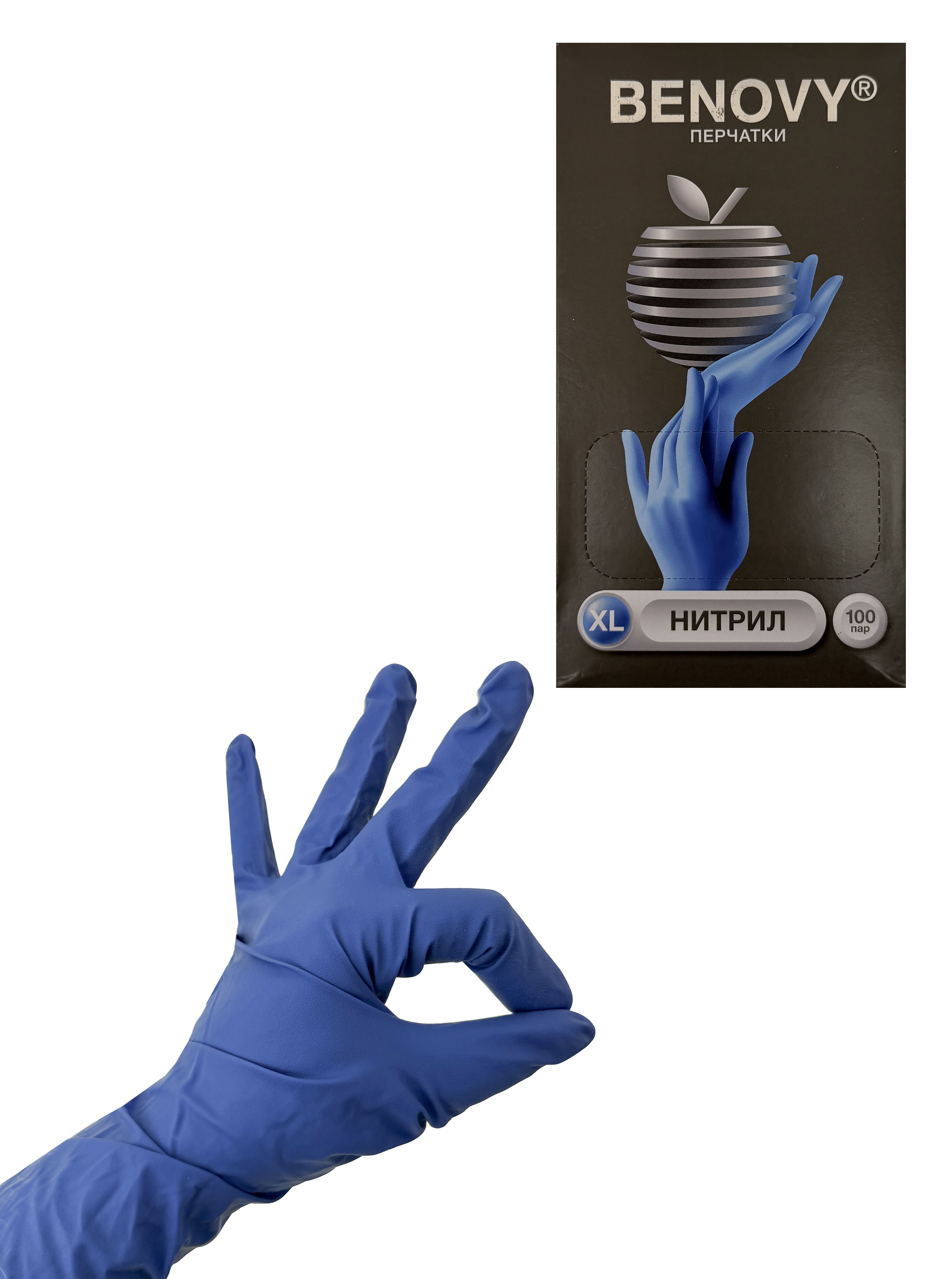 —перчатки нитриловые неопудренные Benovy XL100пар ЧЗ