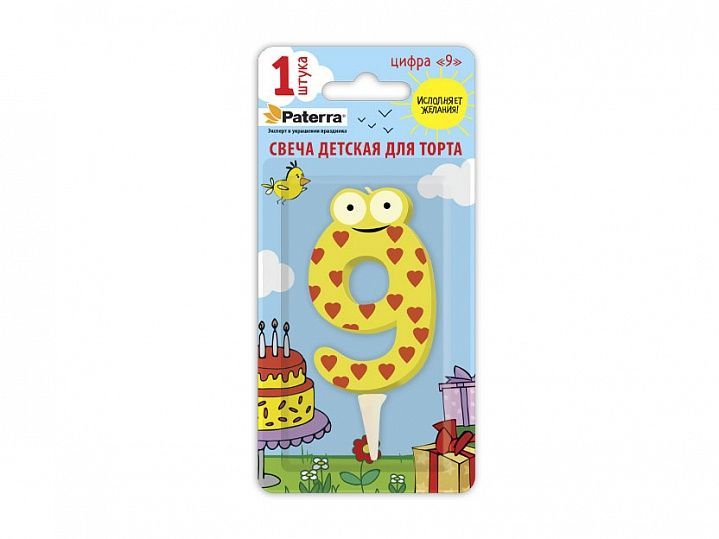 свечи д/торта  Цифры детские "9"  PATERRA
