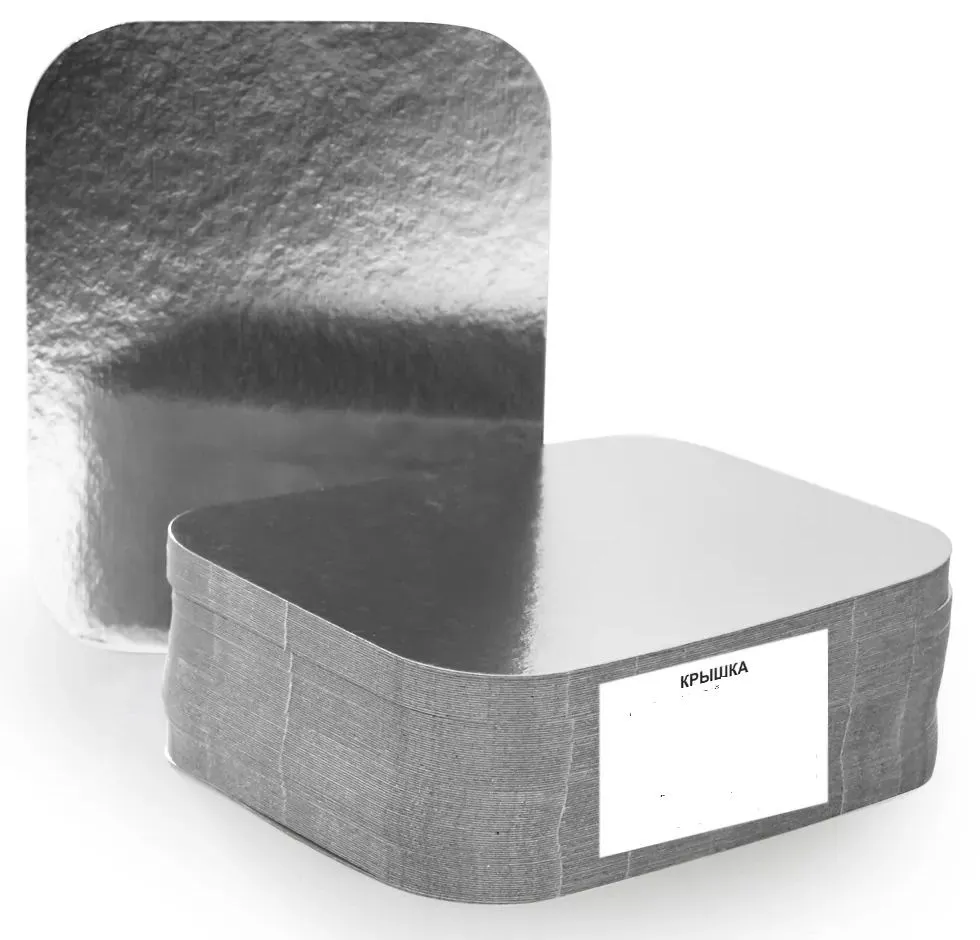 Крышка к алюминиевому контейнеру изготовлена из экологичного картона с алюминиевым покрытием. Благодаря картонной основе, крышка является прочной.