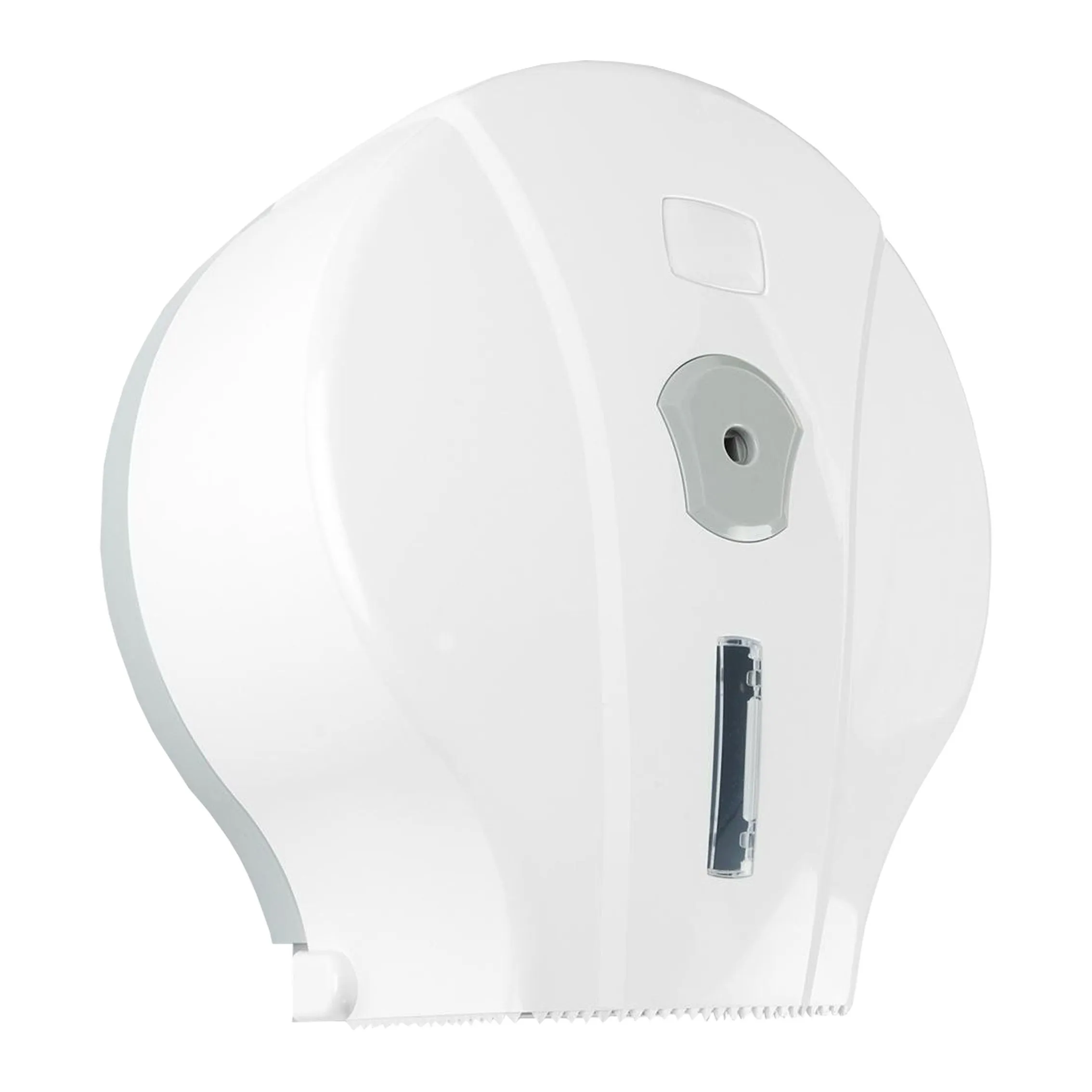 Ширина диспенсера 240 мм, высота 260 мм, глубина 130 мм. Подходит для рулонной туалетной бумаги до 200 метров.