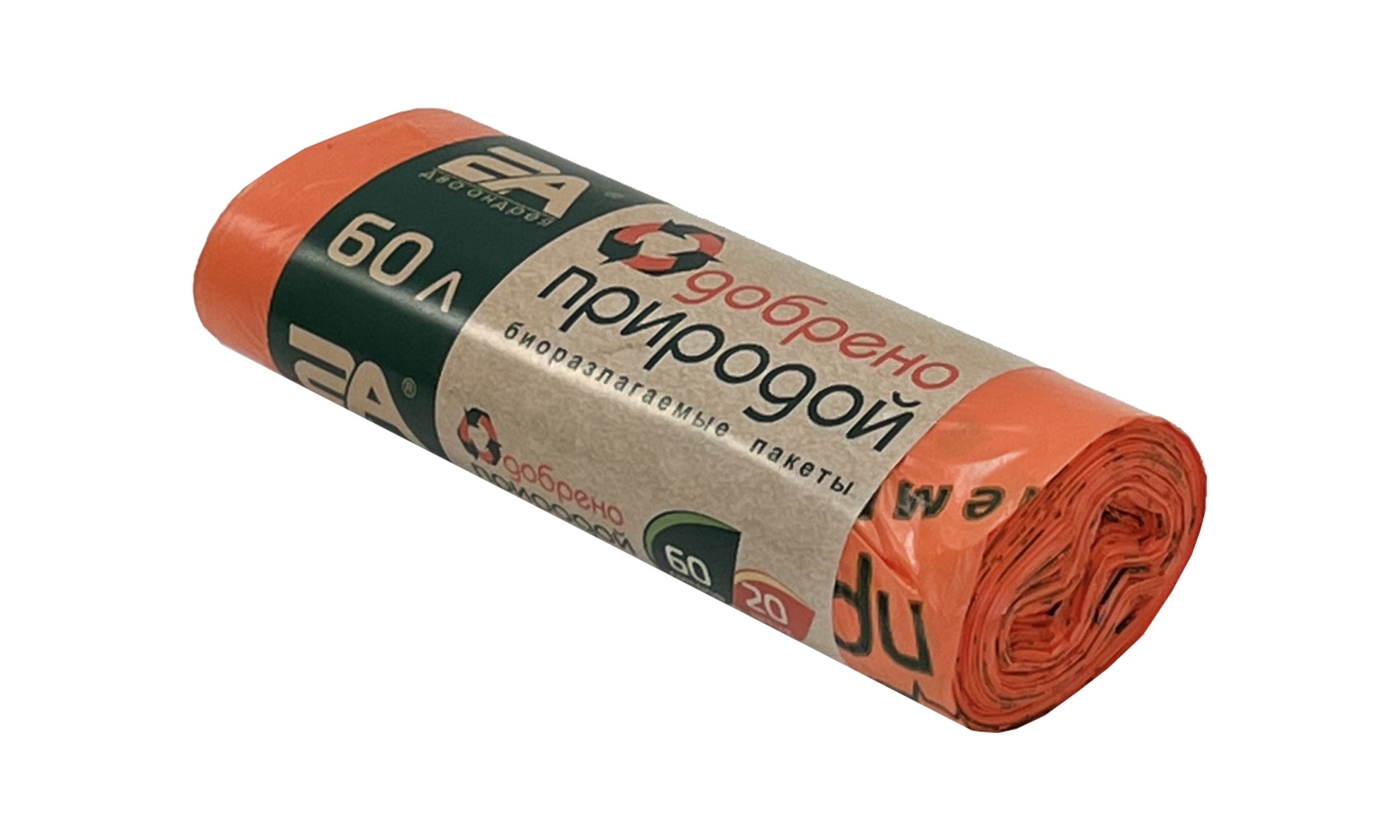 пакеты д/мусора 60л 20шт "Одобрено природой" оранж.