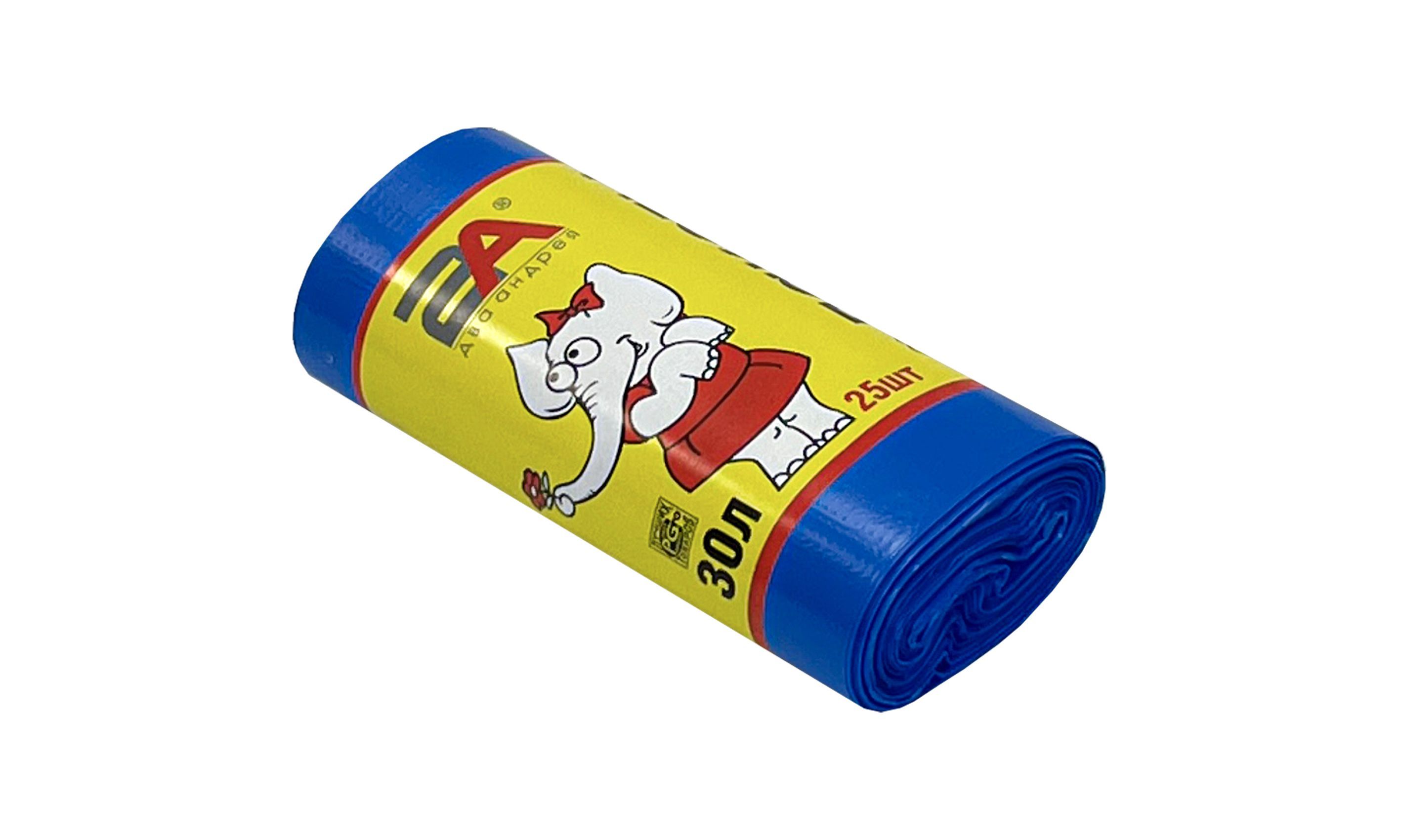 —пакеты д/мусора 30л 25шт "Слоны в рулоне" 2А синие