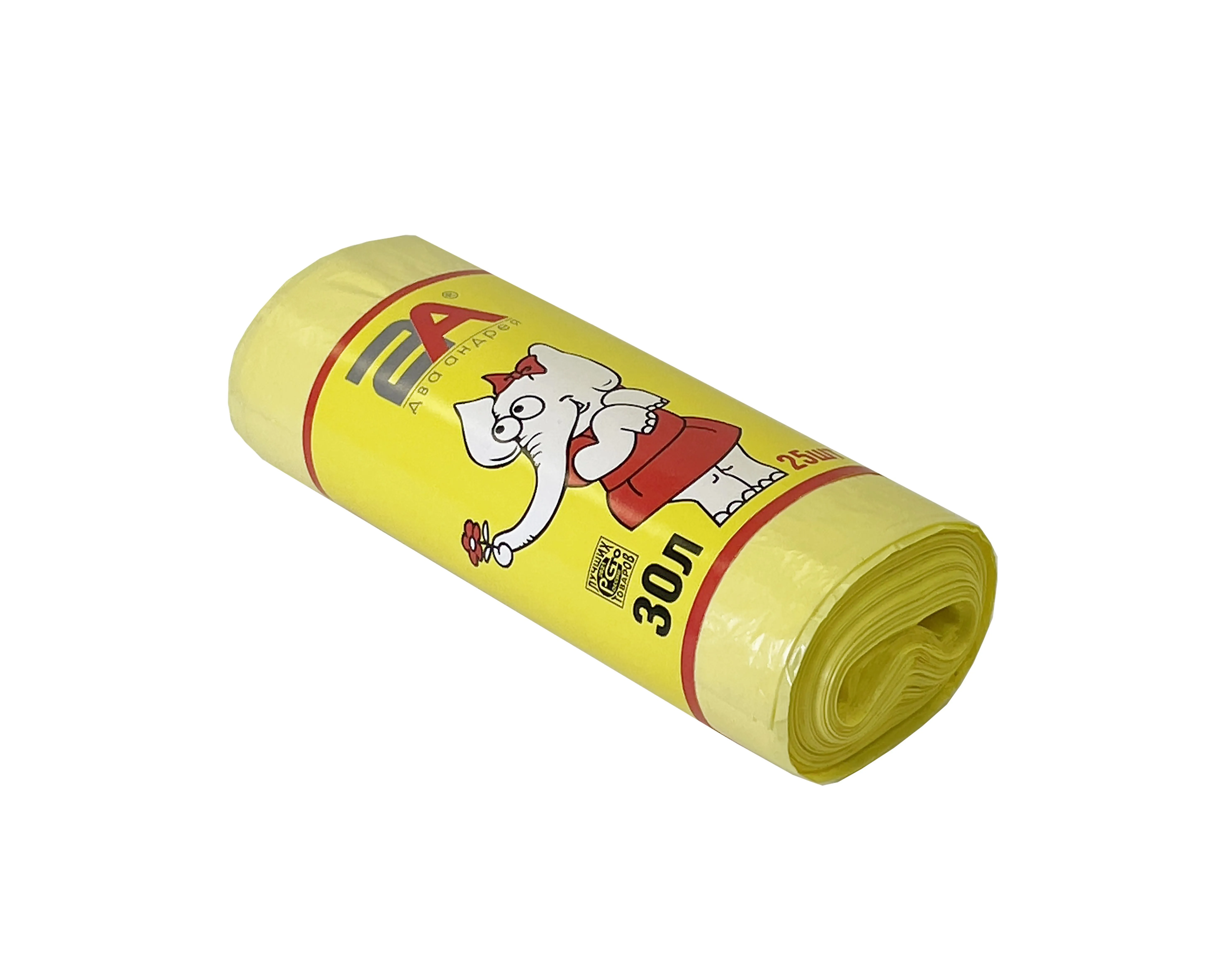 пакеты д/мусора 30л 25шт "Слоны в рулоне" 2А желтые
