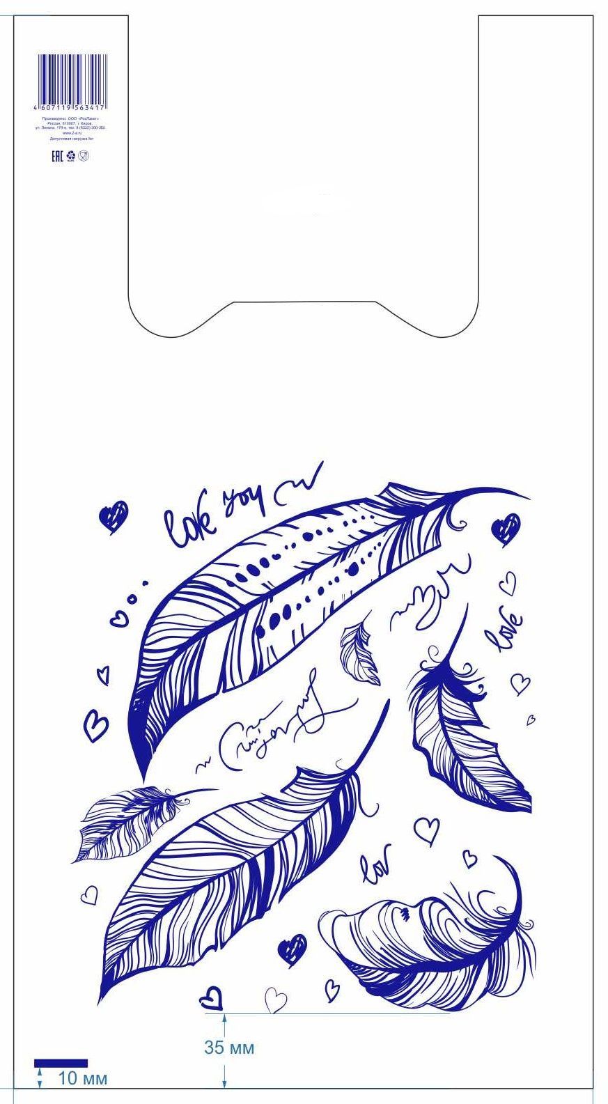 Пакеты-майки размером 27×50 см «Перья» — практичное и эстетичное решение для упаковки товаров в розничной торговле, на кассе и в повседневном использовании.
