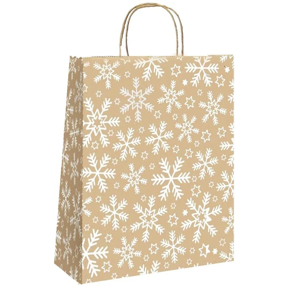 сумка бум. крафт 25х22х12 с круч. ручками СНЕЖИНКА