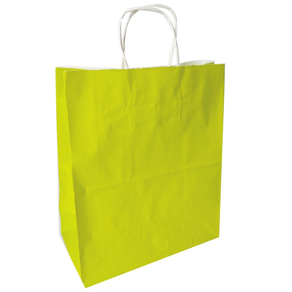 сумка бум. крафт 28х24х14 с круч. ручками Желтый лайм *