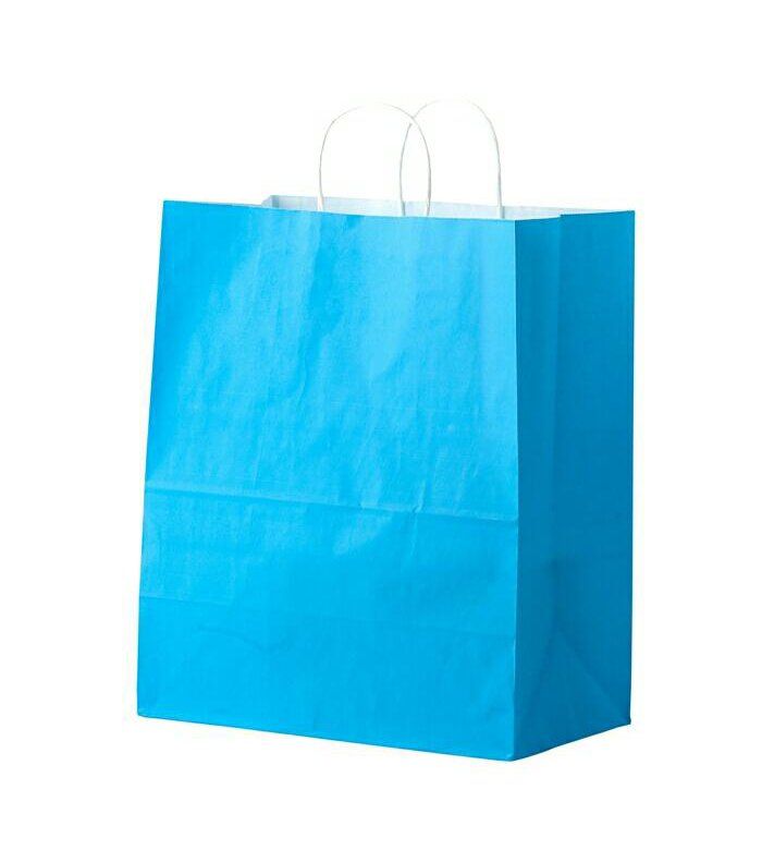 сумка бум. крафт 28х24х14 с круч. ручками Голубой *