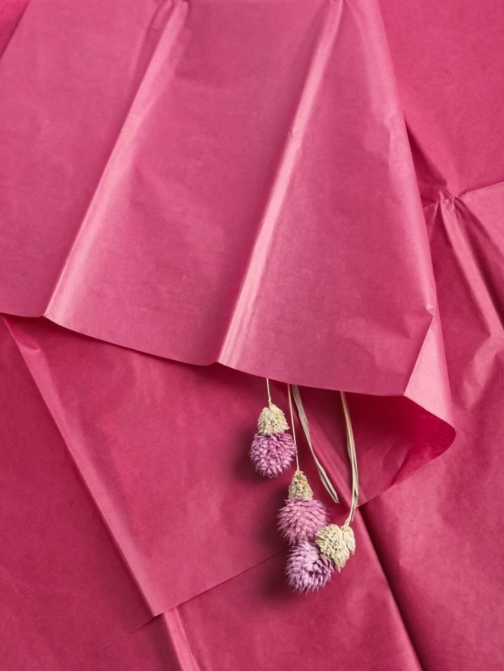 Бумага тишью или, как ее еще называют, папиросная обёрточная бумага - это тонкая, нежная и привлекательная декоративная бумага разных оттенков. Производится она из беленой сульфатной целлюлозы, получаемой из древесины деревьев хвойных пород. Папиросная бумага прекрасно подходит для того, чтобы обернуть подарок любой формы, её можно вложить в качестве наполнения в подарочные пакеты или коробки для придания дополнительного объема. Бумага тишью в сочетании с крафт-бумагой, шляпными коробками, атласными лентами является отличной упаковкой для цветов. Из бумаги тишью легко создавать помпоны, кисточки, гирлянды, украшать фоны для фотосессий и тематических зон на различных мероприятиях, создавать гигантские цветы или огромные цифры.